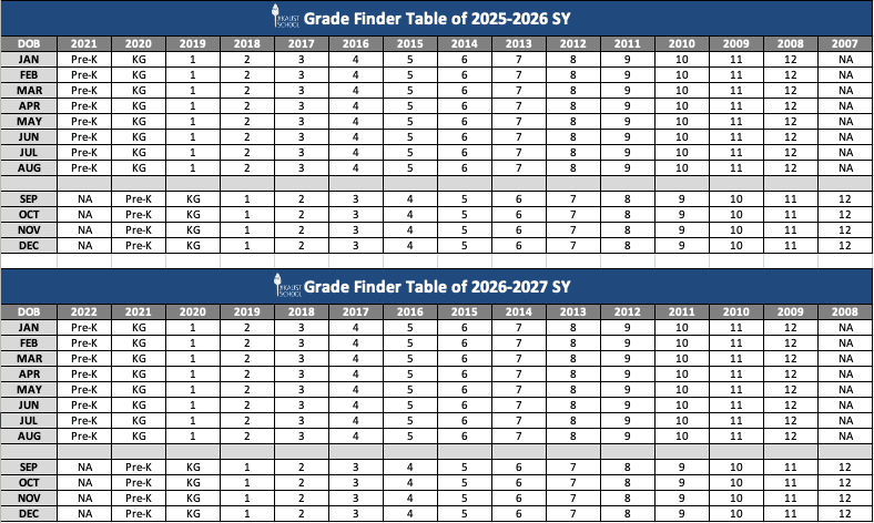 - Meet the age requirements for their grade