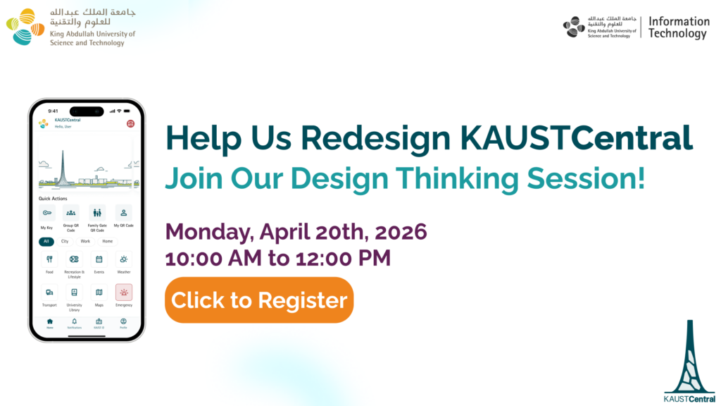Whether you use KAUSTCentral daily or occasionally, your perspective matters. The session will be hands-on, collaborative, and centered around understanding what works for you today and what could be improved tomorrow.