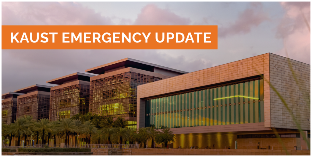 Office of the PresidentKAUST Emergency Updates March 4, 2026March 4, 20260124 The website below is the official KAUST platform for emergency communication. KAUST Emergency Update website Please bookmark it for quick access.