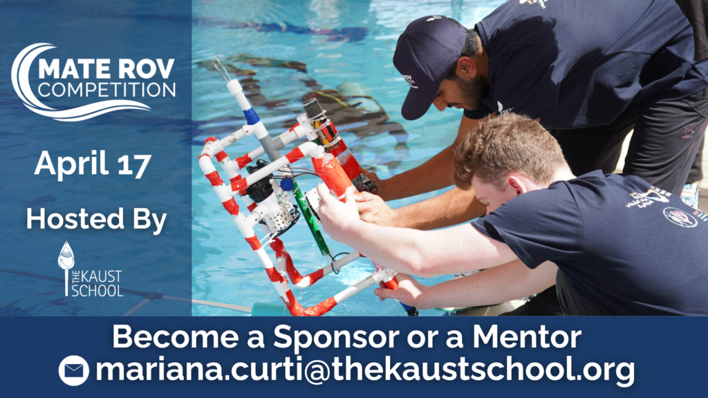 Partner with TKS for the Mate Rov Competition. For the fourth year in a row, The KAUST School is proud to host the Mate Rov Regional Competition, and we need YOU!