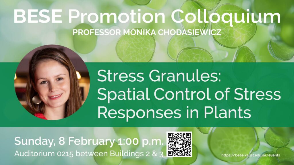 Dr. Monika Chodasiewicz is an Assistant Professor in the Plant Science program within the Biological and Environmental Science & Engineering (BESE) Division at King Abdullah University of Science and Technology (KAUST) and an Executive Member of the Center of Excellence for Sustainable Food Security (CoE-SFS). She earned her Ph.D. in Plant Molecular Physiology (2010–2014), during which she contributed to the discovery of the oxygen-sensing mechanism in plants. The team’s work was recognized by Sir Peter J. Ratcliffe in his 2019 Nobel lecture on the discovery of the low-oxygen-sensing mechanism in human cells. Prior to joining KAUST, she completed her postdoctoral training in Biochemistry (2014–2020) at the Max Planck Institute of Molecular Plant Physiology in Germany, where she developed innovative methods for studying small-molecule–protein interactions. Since November 2020, Dr. Chodasiewicz has been leading a research group at KAUST dedicated to identifying and functionally analyzing stress-specific components—proteins, metabolites, and mRNAs—associated with stress granules (SGs) formed under challenging environmental conditions. Her pioneering work on biomolecular condensates in plants has established a new research direction in plant biology, catalyzing the growth of a broader scientific community investigating condensate-mediated stress responses.