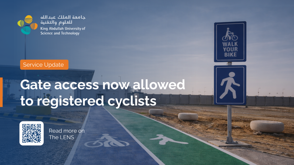 Only bicycles registered with KAUST Security will be permitted. If you haven’t already, please visit the ID Office to register your bike before your first trip. Security personnel will verify registration upon re-entry to the campus.