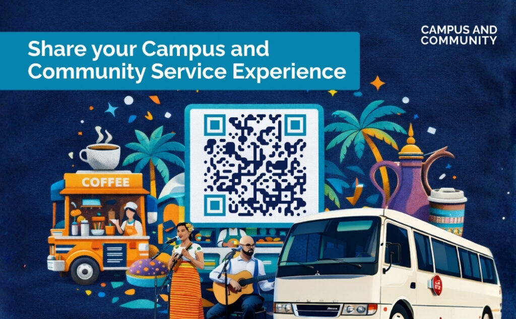 Rather than separate surveys from individual departments, the new approach provides one simple feedback channel, accessible through the survey QR code or link. This helps reduce survey fatigue and makes it easy to share feedback whenever you interact with a Campus and Community service.