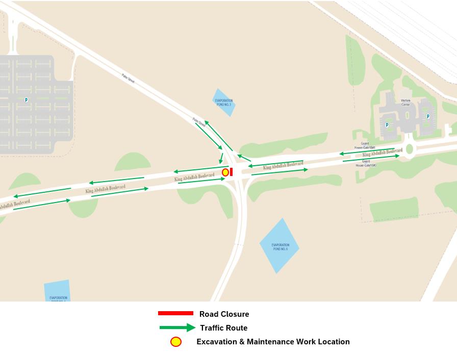Please note that a section of King Abdullah Boulevard and the Palm Street intersection will be partially closed from February 23 to February 28, 2026, due to major maintenance work.