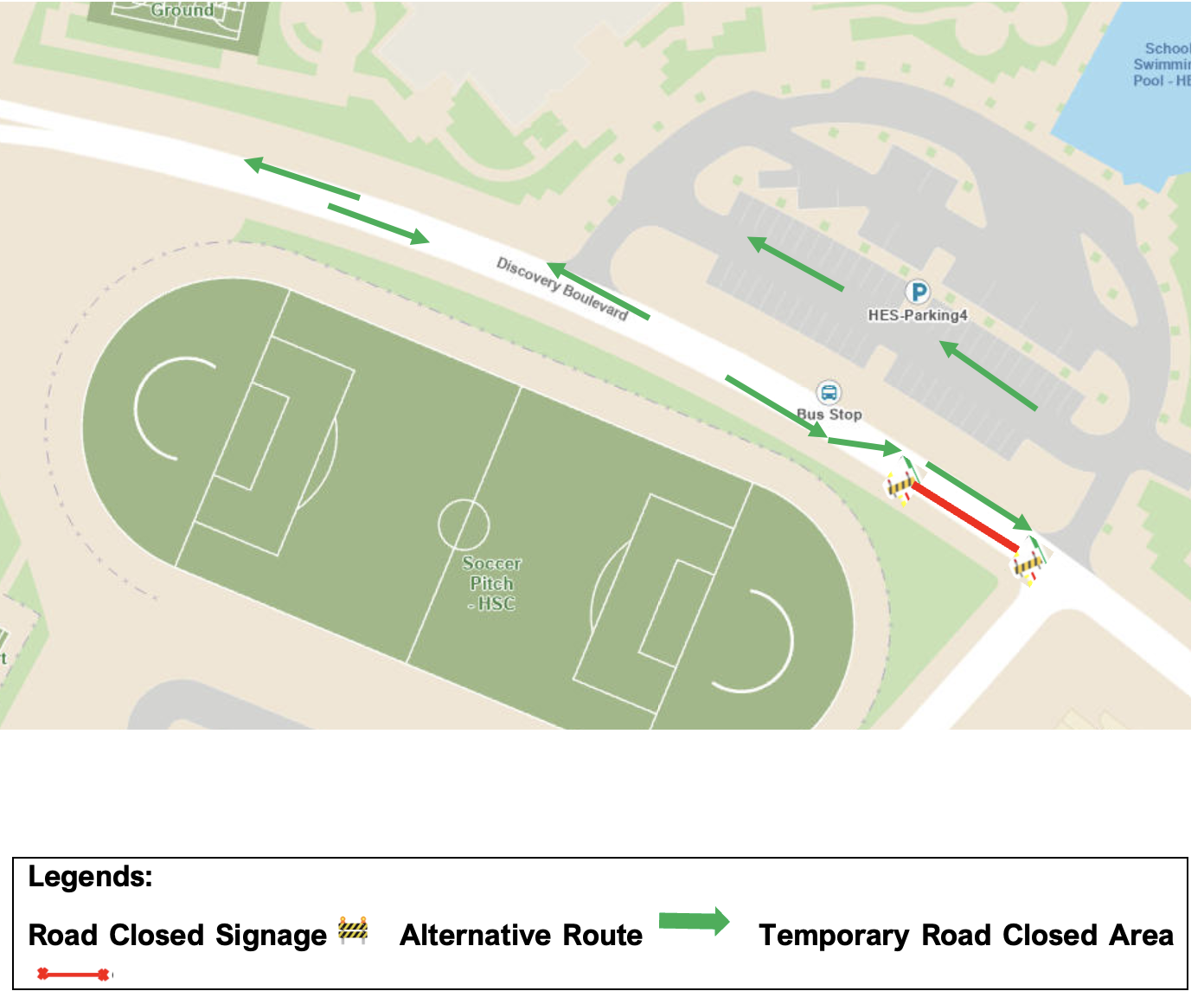 Temporary Road Closure|Discovery Boulevard Road and HSC Soccer Pitch